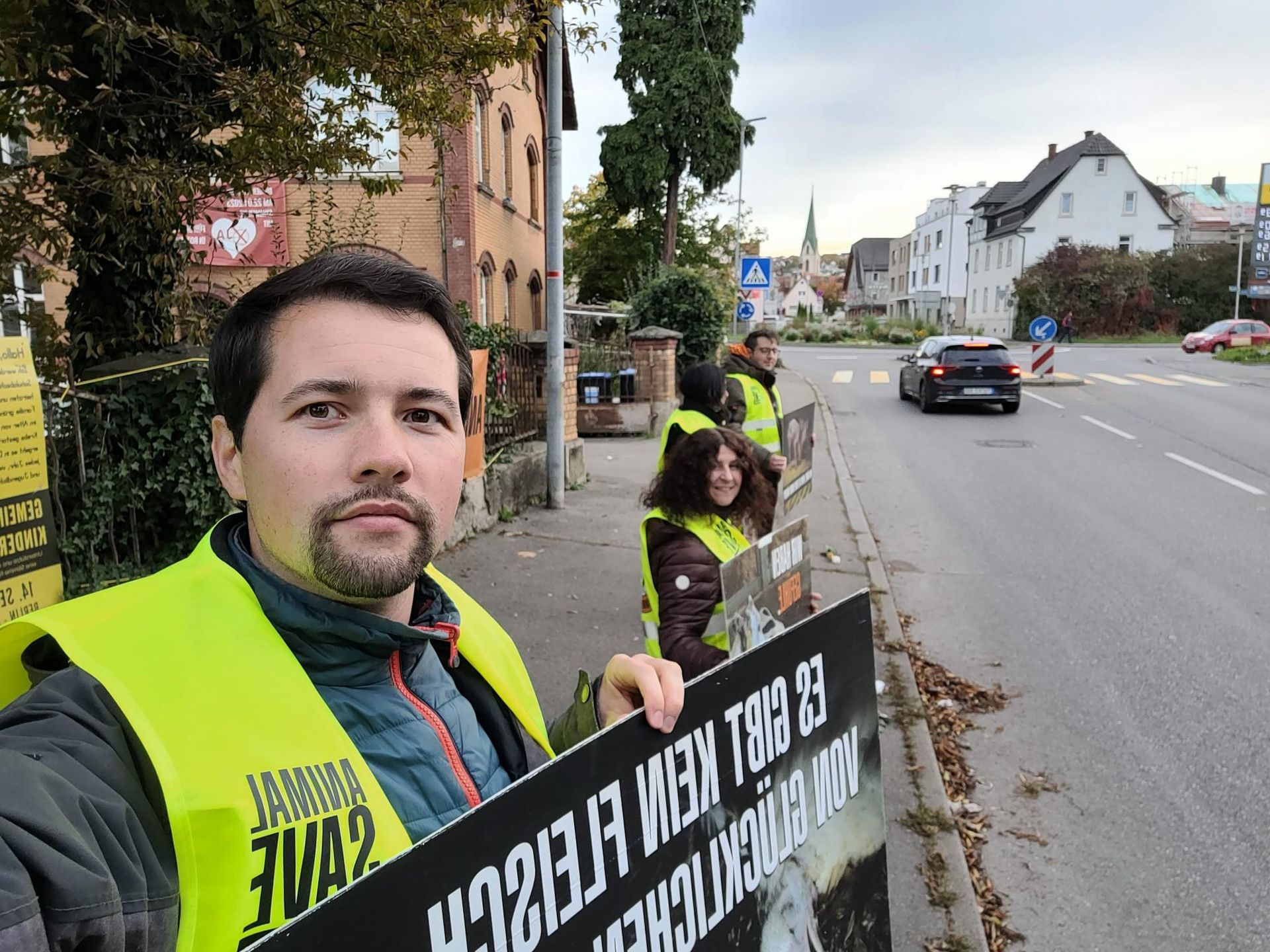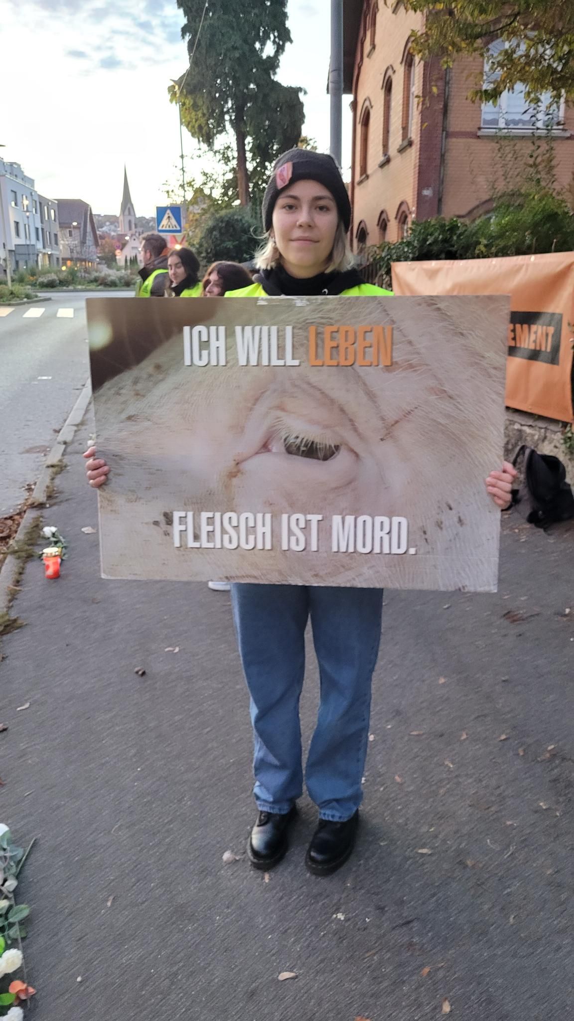 Wir hatten auch positive Begegnungen mit jungen Rottenburger*innen, die bereits vegan leben und unsere Aktion lobten. Ein Teenager aus Remmingsheim stellte viele Fragen zur Aktion, filmte das Gespräch mit seinem Smartphone und stimmte unseren Argumenten zu.