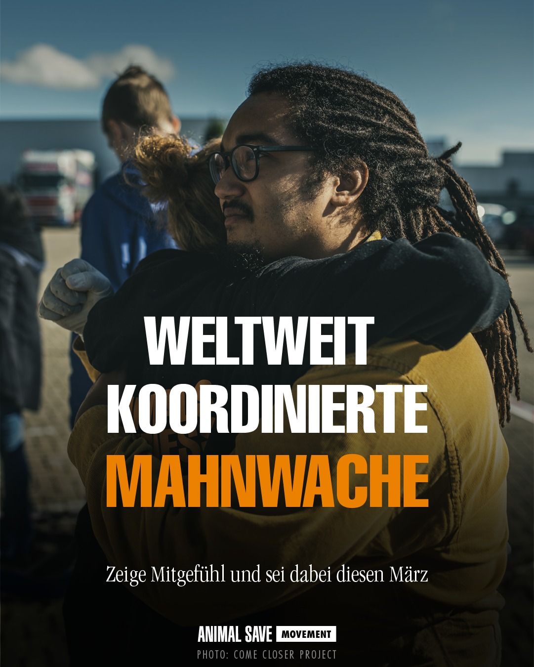 Rottenburg Animal Save ist Teil eines globalen Netzwerks von Hunderten von Ortsgruppen des Animal Save Movement, die vor den Toren der Schlachthöfe die Ungerechtigkeit und das Tierleid bezeugen. Die Mission des Animal Save Movement besteht darin, die Idee zu verbreiten, dass wir alle die moralische Pflicht haben, Zeugnis abzulegen, die Tierhaltung zu beenden und die Erde wieder aufzuforsten. Ihre Vision ist eine gerechte, umweltfreundliche vegane Welt für die Tiere, den Planeten und unsere Gesundheit.
