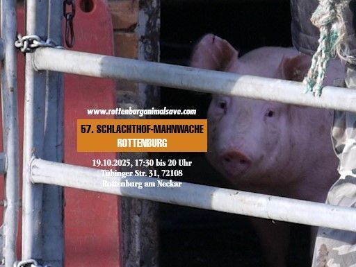 Seit 2021 halten wir regelmäßig friedliche Mahnwachen vor dem Schlachthof in Rottenburg ab.